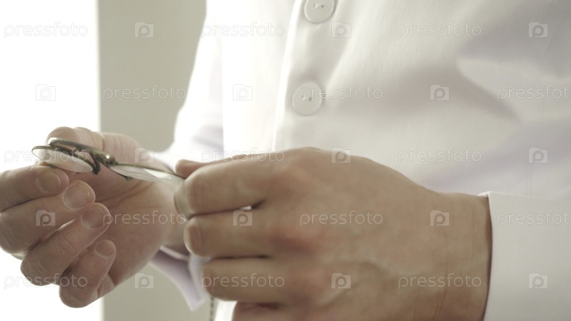 Мужчина вытаскивает свои старые очки. Резервные кадры. Человек в белой рубашке вытащил из кармана очки. Аристократ вытащил очки 19-го века