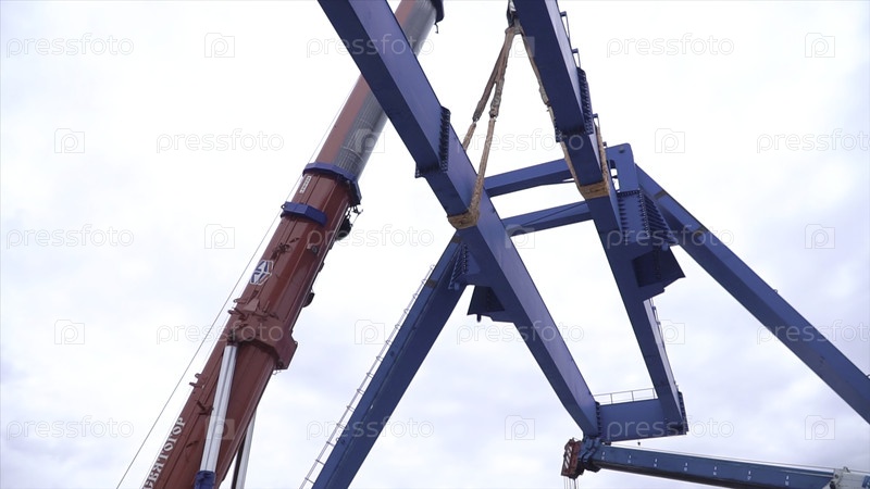 Москва, Россия - сентябрь 2018: Gantry кран с крючком для подъема. строительная площадка. промышленное предприятие