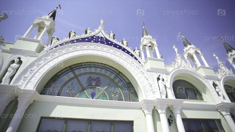 Вход в театр под голубым небом. видео. верхняя часть главного входа в Театр оперы и балета