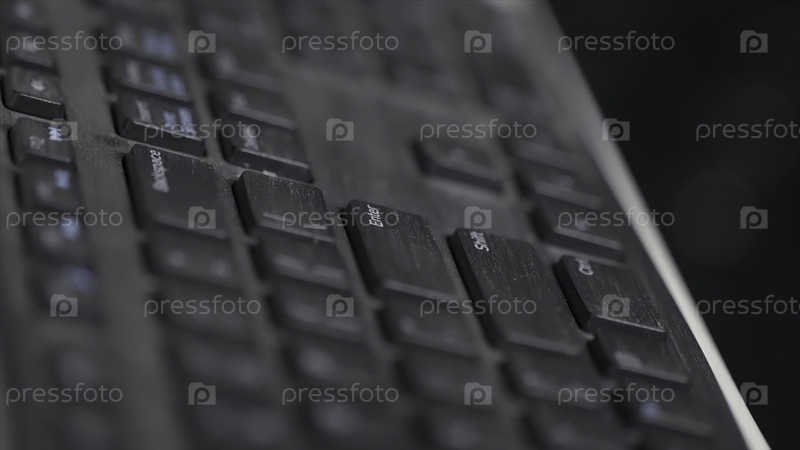 Закрытие пальца над черными клавишами ноутбука путем нажатия кнопки ввода, концепции компьютеров и технологий