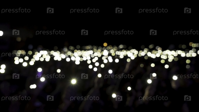 Разочарованные зрители в зале со свечами, размахивающими во тьме. Продолжайте. Зрители, держащие телефоны с искрящимися фонариками во время концерта, в романтической атмосфере