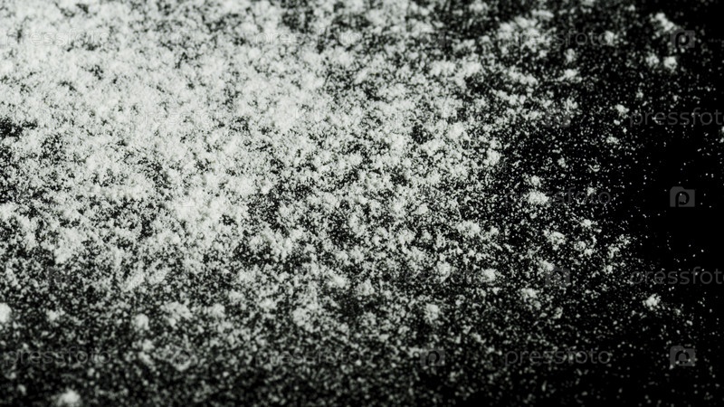 Белый порошок падает в изоляции на черном фоне. резервные кадры. белое сухое чернила, падающее на темную поверхность