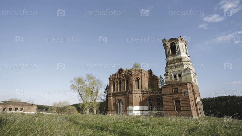 Красивый живописный вид древнего буддийского храма на фоне поля. видео Древняя разрушенная русская церковь или храм, покрытый травой в поле