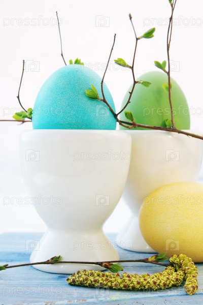 Три яйца в белыхй керамических подставках