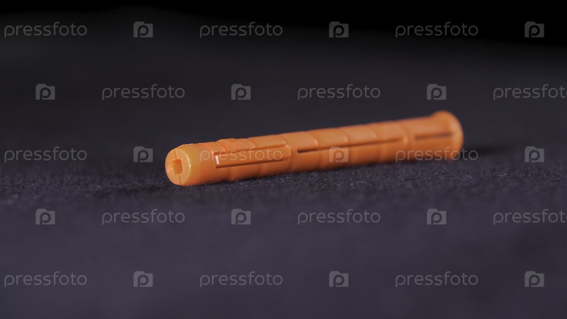 Красный пластмассовый строительный доуль, лежащий на темно-серой поверхности. резервные кадры. оранжевый доуль, детали строительства нового дома
