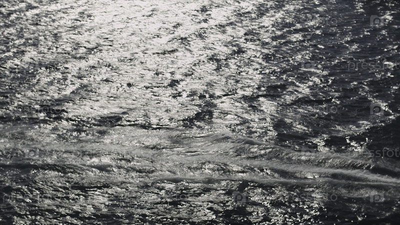 Морской хвост со скоростной лодки. Стрелять. Воздушный морской пейзаж с волнами поверхности моря или океана и образованием пены высокоскоростного моторного катера, естественный фон