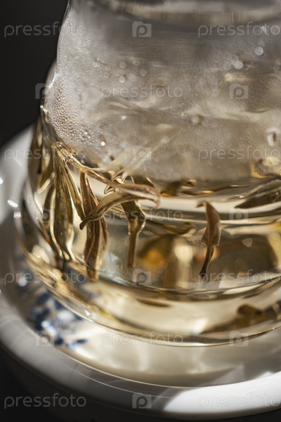 Элегантное стекло, наполненное кубиками льда и экзотическими чайными листьями для освежающих напитков