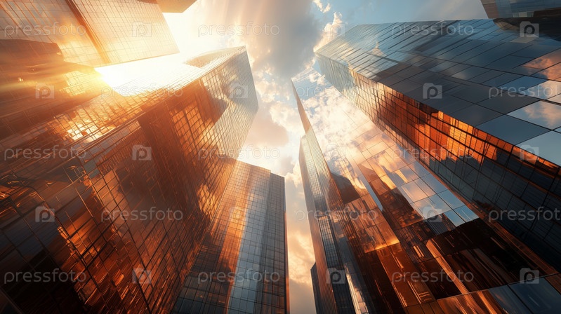 Солнечный свет отражается на современных небоскребах в футуристическом городе