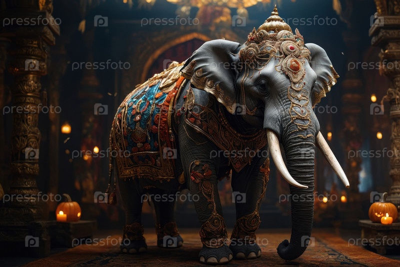 ИИ-генерирующее слоновое животное на темном пугающем фоне тыквы с украшением Хэллоуина