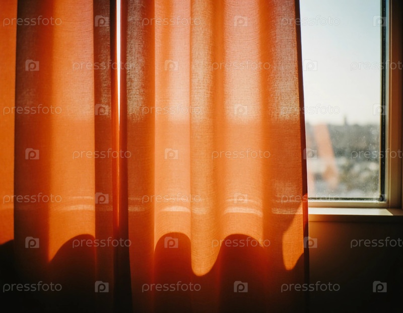 Солнечный свет проникает сквозь красные шторы, бросая теплые яркие тени.Сцена спокойная и подчеркивает момент тишины в утреннем свете