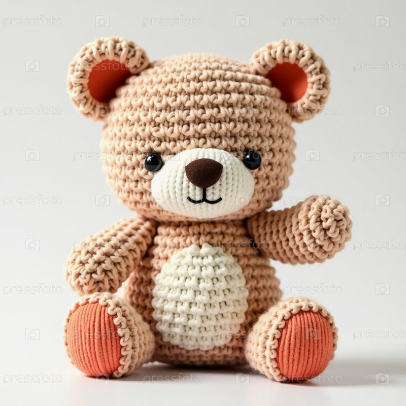 Трикотажный плюшевый медведь сидит сладко, демонстрируя свою мягкую текстуру и теплые цвета генеративного ИИ