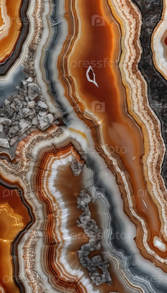 Завораживающие текстуры агатового минерального камня демонстрируют смесь темно-оранжевых, коричневых и белых цветов.Природные узоры переплетаются между собой, раскрывая слои красоты и геологического чуда