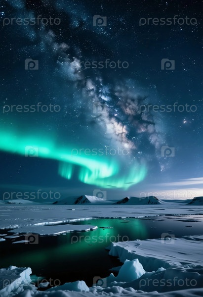 Очаровательный вид на северное сияние, освещающее пейзаж тундры.Ночное небо сверкает звездами в то время как праздничные торжества приносят тепло холодной атмосфере генеративного ИИ