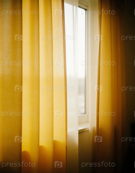 Ярко-желтые шторы элегантно закрывают окно, нежно фильтруя золотистый солнечный свет в комнату утром и создавая веселую, приглашающую атмосферу генеративного ИИ