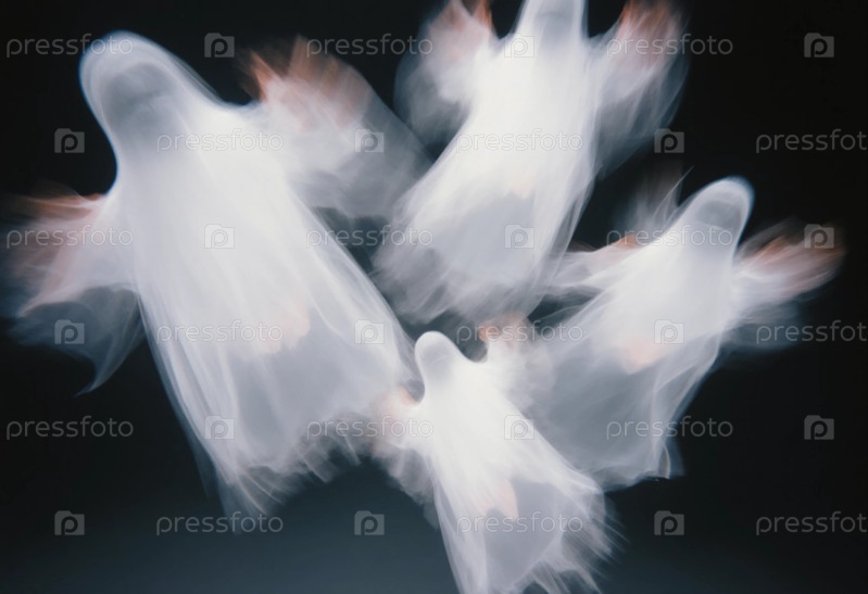 Прозрачные привидения плавают в темном ночном небе, создавая очаровательную атмосферу. их формы мягко качаются по мере смешивания, приводя к призрачно красивой сцене генеративного ИИ