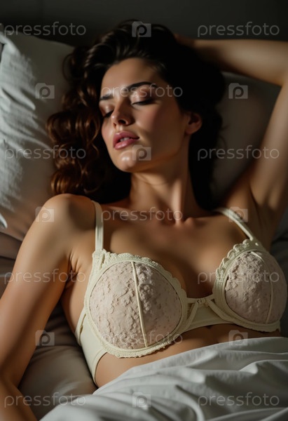Спокойный момент захватывает женщину, комфортно отдыхающую в постели, украшенную изысканным нижним бельем Generative AI