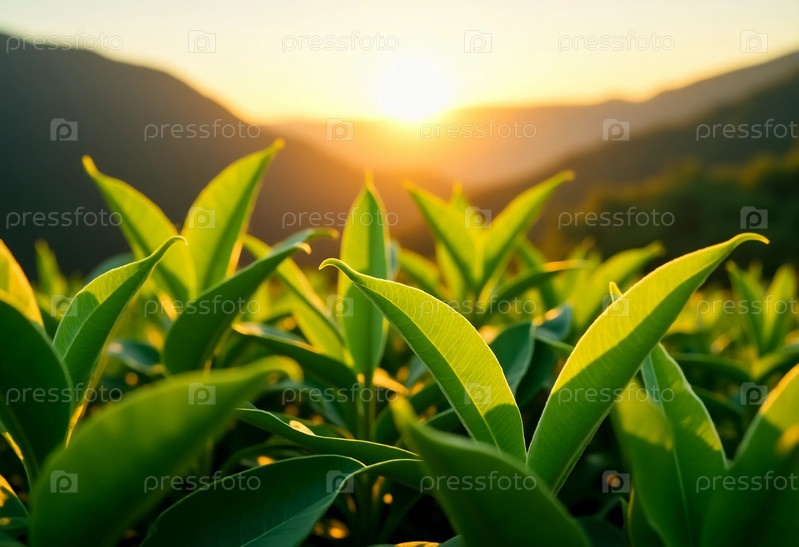 Яркие зеленые чайные листья тянутся к теплому утреннему солнцу, освещая захватывающий дух пейзаж чайных плантаций в Китае, Индии, Шри-Ланке, Кении и Индонезии