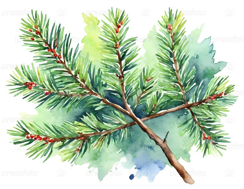 Плодородные сосновые ветви смолы грациозно растягиваются, показывая богатые зеленые иглы, чередующиеся с крошечными красными ягодами под ярким солнечным светом