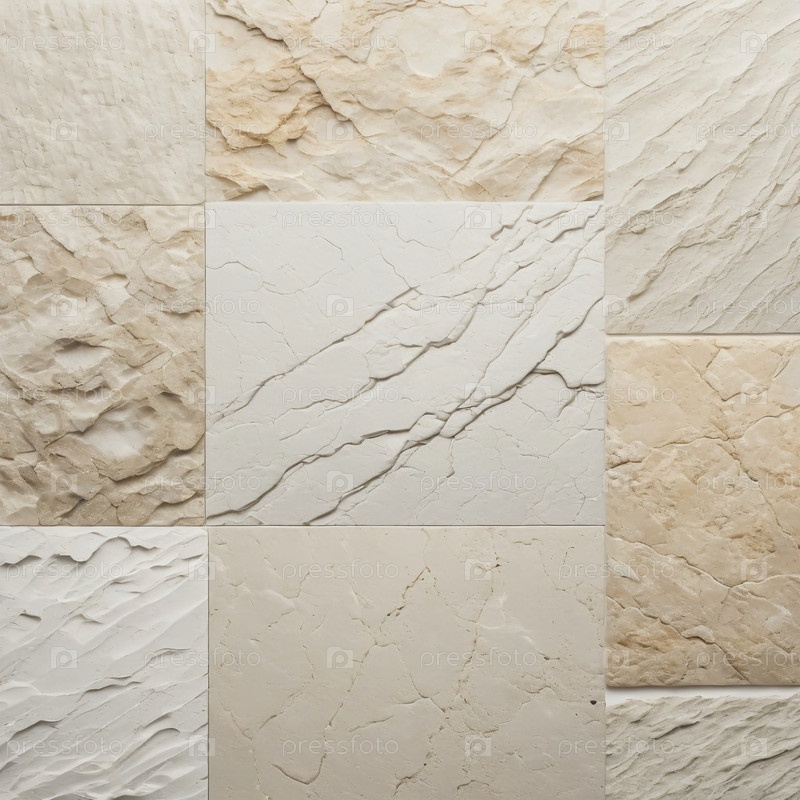 Разнообразные текстуры декоративных плиток из сланцевого камня сочетают в себе светло-белые, серые и бежевые тона, предлагая утонченное прикосновение генеративного дизайна интерьера AI