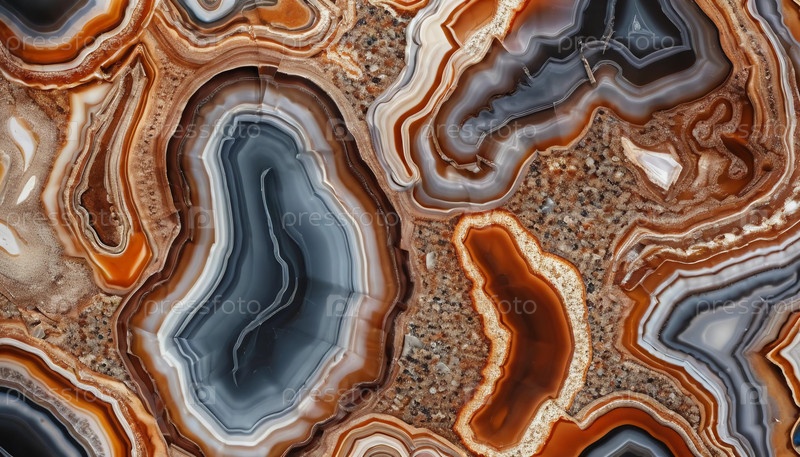 Откройте для себя поразительные текстуры и яркие оттенки минерала агата, представляющие собой вихревые узоры серого, оранжевого и белого цветов, генерирующих AI