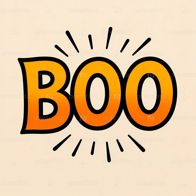 Игральный дизайн Хэллоуина содержит слово Boo большими жирными оранжевыми буквами.Текст имеет смешной эффект взрыва, создавая захватывающую атмосферу праздника, идеально подходящую для праздничных торжеств с генеративным ИИ