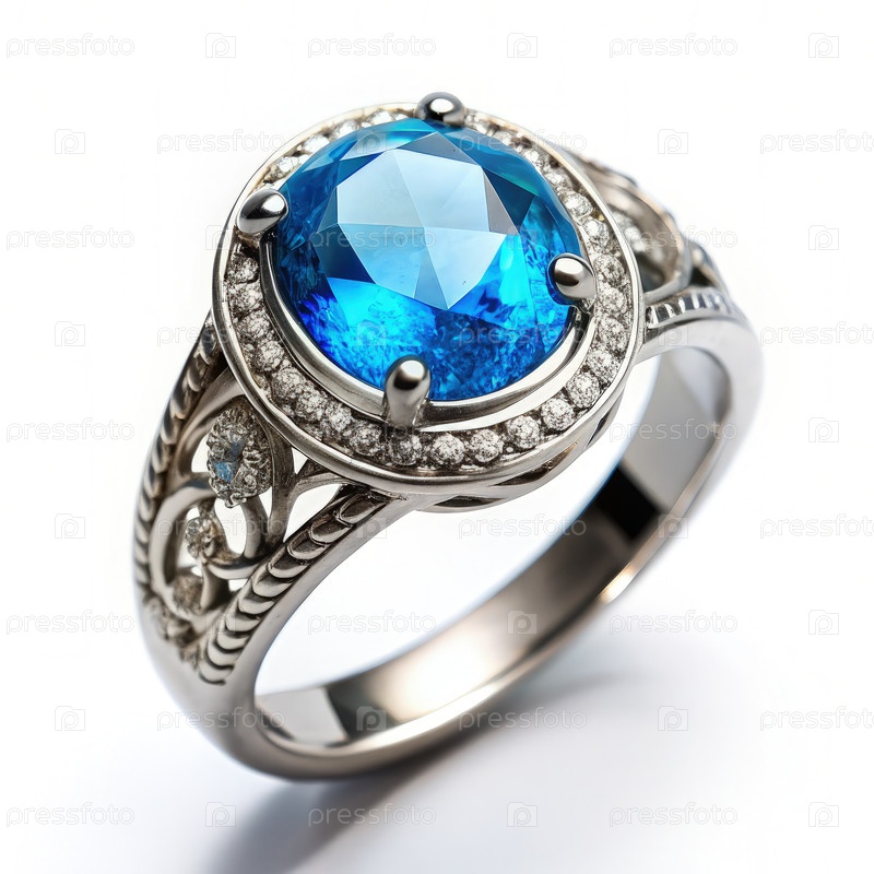 Серебряное кольцо с синим драгоценным камнем и бриллиантовыми акцентами