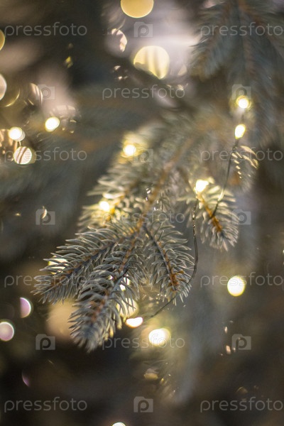 ветки ели с огоньками