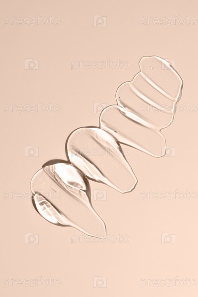 текстура глицерина. прозрачная капля сыворотки на бежевом фоне. жидкий гелевый увлажнитель с пузырьковыми макросами