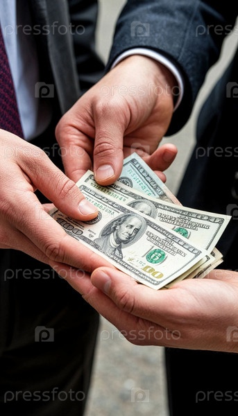 Мужчина берет деньги у другого мужчины