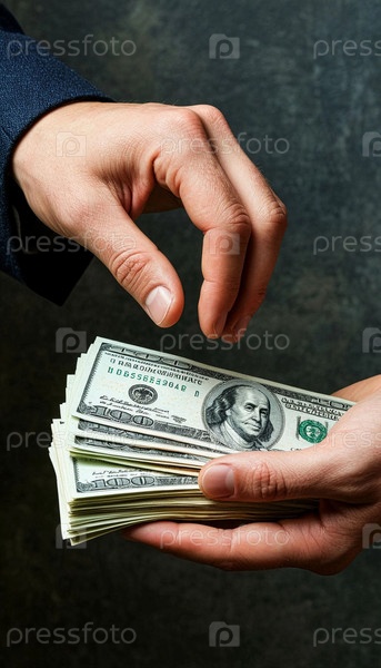 Мужчина принимает кучу денег/подкуп от другого мужчины