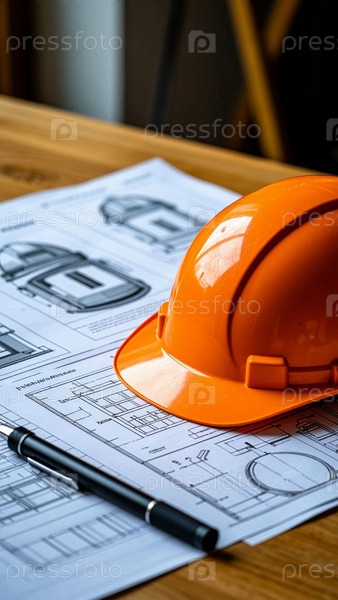 Шлем лежит рядом с рисунками и ручкой