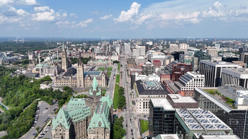 Вид воздушной столицы на горизонте центра города, здания парламента Оттавы, Онтарио, Канада