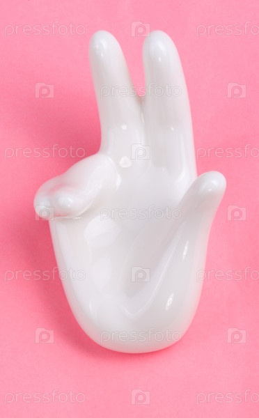 Керамическая стойка с формой руки на розовом фоне