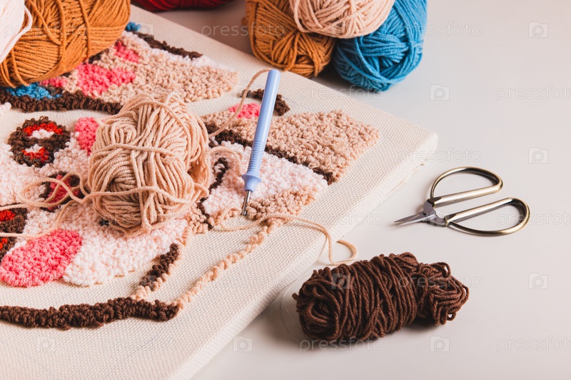 Комплект перфораций, нитей, полотна и иглы для ремесел на столе