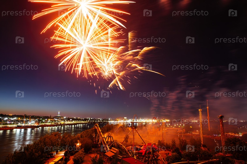 27 июня 2024 года Международный фестиваль фейерверков возле парка развлечений Монреаль праздничные фейерверки над водой