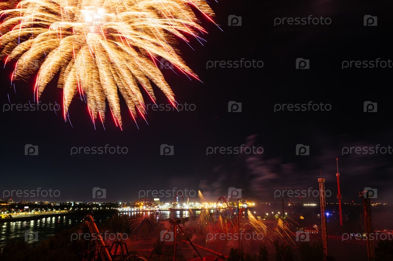 27 июня 2024 года Международный фестиваль фейерверков возле парка развлечений Монреаль праздничные фейерверки над водой