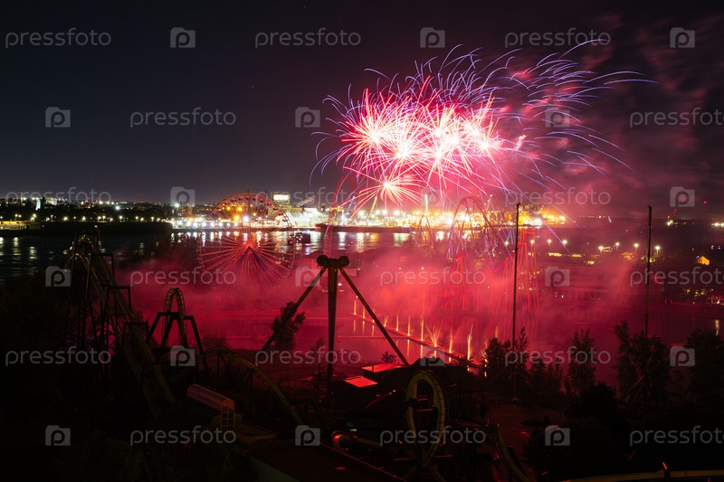 27 июня 2024 года Международный фестиваль фейерверков возле парка развлечений Монреаль праздничные фейерверки над водой