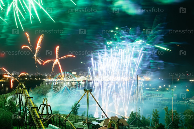 27 июня 2024 года Международный фестиваль фейерверков возле парка развлечений Монреаль праздничные фейерверки над водой