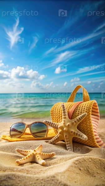 Летние предметы первой необходимости на песчаном пляже