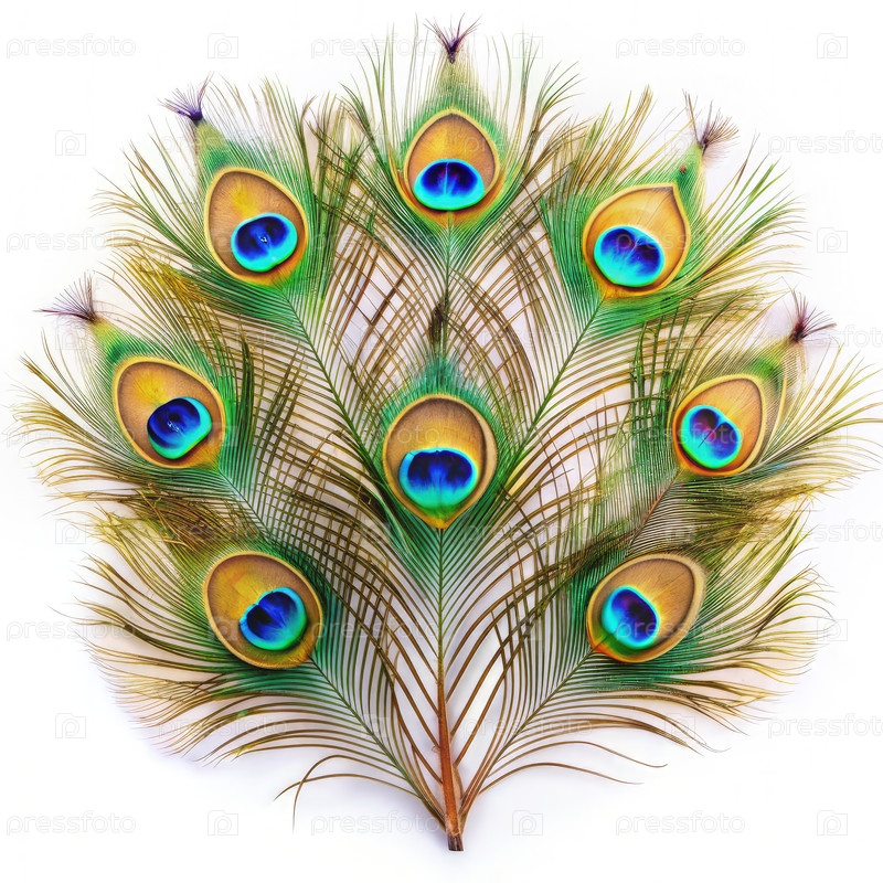 Перо павлин расположено в виде ветров на белом фоне, генерируя AI