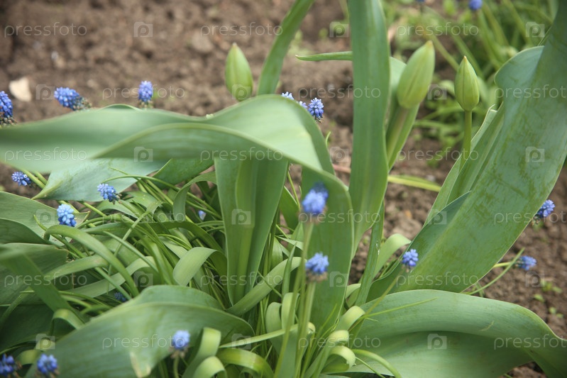 Цветущее растение мускари, также известное как змейский лук или мышиный гиацинт