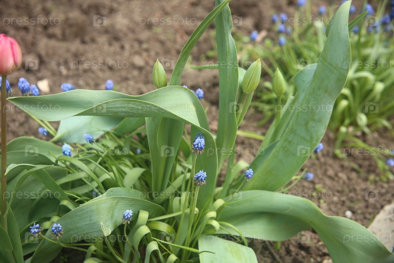Цветущее растение мускари, также известное как змейский лук или мышиный гиацинт