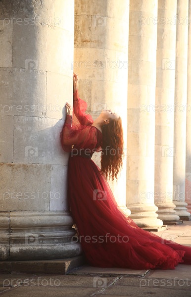 Красивая девушка в красном платье позирует