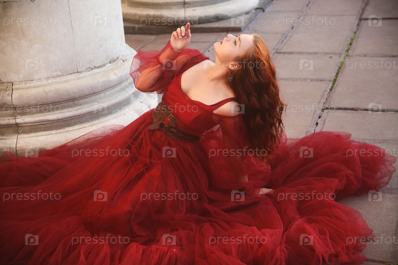 Красивая девушка в красном платье позирует