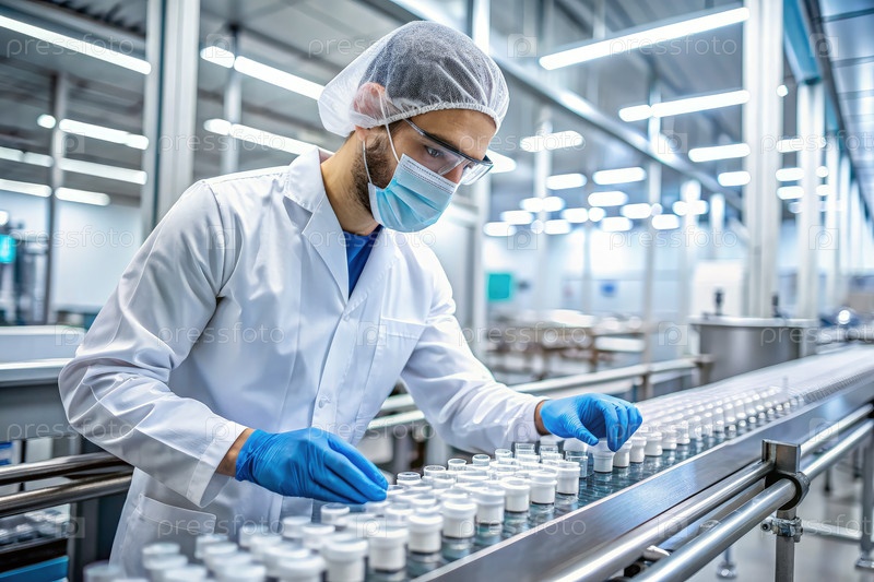 Фармацевт-ученый, работающий на конвейерной ленте