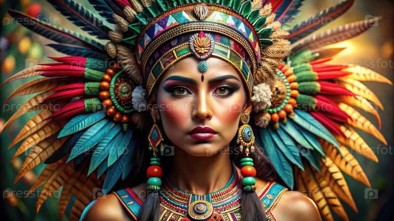 Женщина с красочными головными уборами и перьями