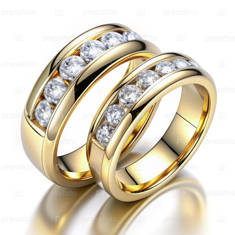 Золотые алмазные обручальные кольца.Generating AI