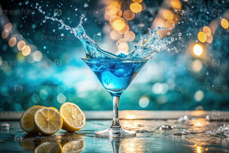 Голубой коктейль с водным брызгом