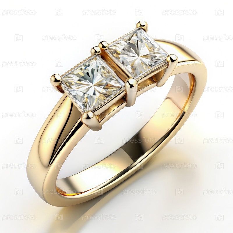 Золотое обручальное кольцо с двумя квадратными бриллиантами