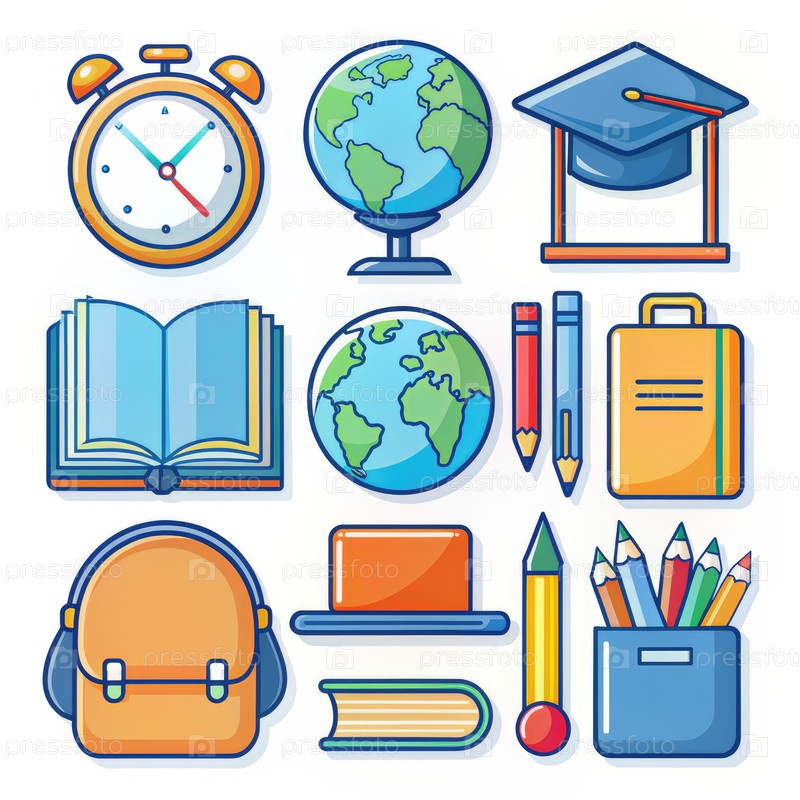 Красочная школа мультфильмов предлагает набор икон